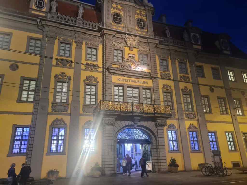 Den Abschluss der Nacht bildetet das Angermuseum Erfurt. Damit schloss sich in gewisser Weise auch der Kreis, denn einige Stunden zuvor hatte ich hier mein Ticket für den heutigen Abend erworben. Das Gebäude selbst ist sehr weitläufig, so dass man sich dort auch problemlos verlaufen könnte. Blickfang im Inneren war jedoch die Ausstellung von Heinz Zander. Seine Bilder waren mit unter sehr farbintensiv. Motivisch haben sie mich weniger angesprochen. Ich empfand sie mit unter gewöhnungsbedürftig, wenn nicht gar grotesk. Aber das ist gleichzeitig auch das schöne an der Kunst. Denn hier ist am Ende für jeden Geschmack etwas dabei und den eigenen Horizont zu erweitern bzw. offen für neues zu sein, hat auch noch nie geschadet.