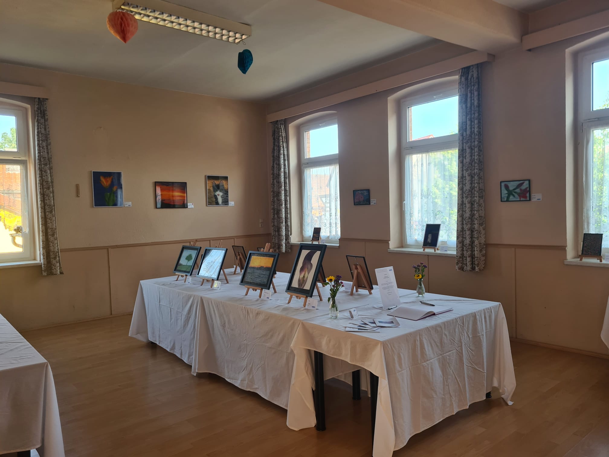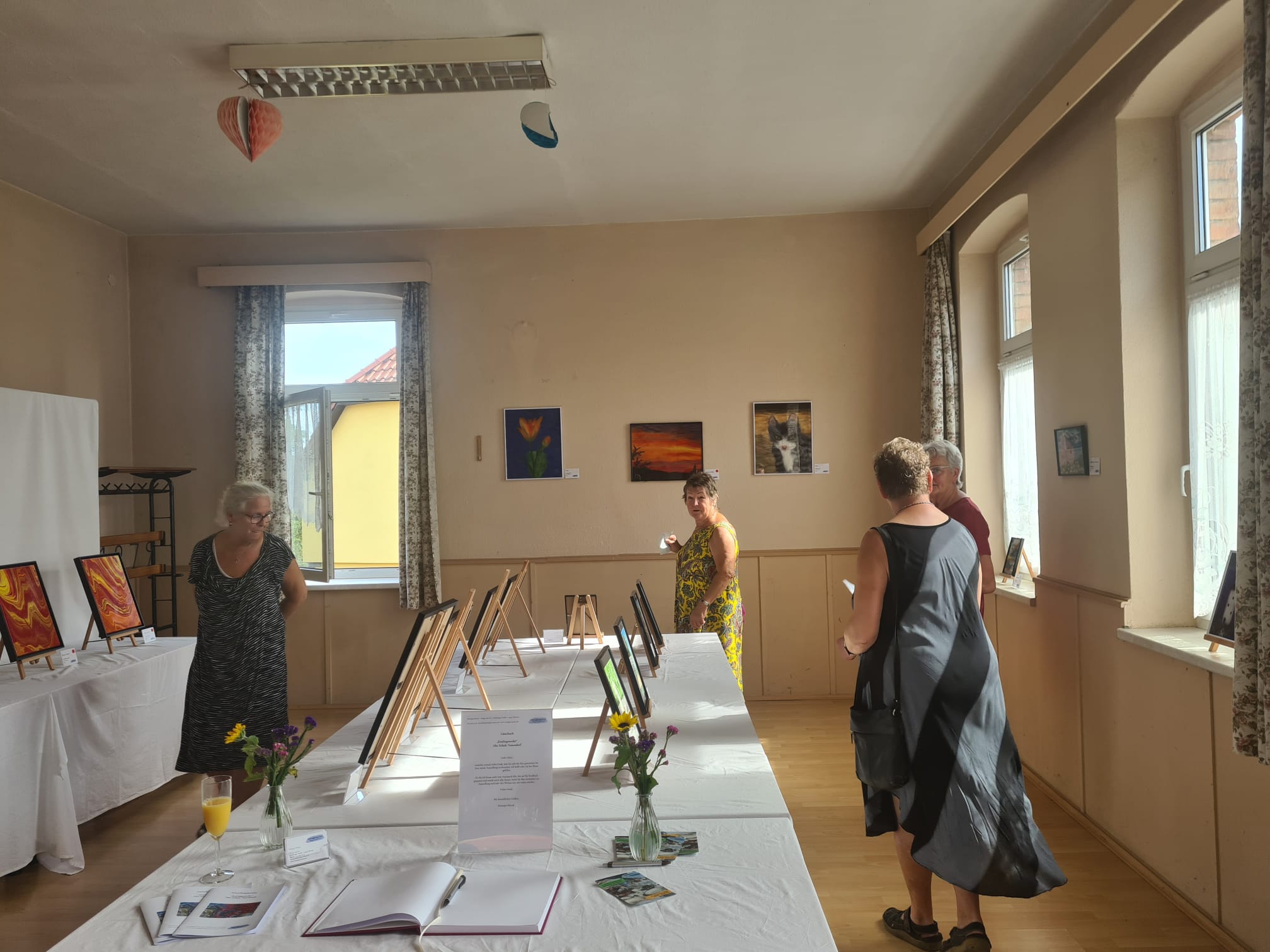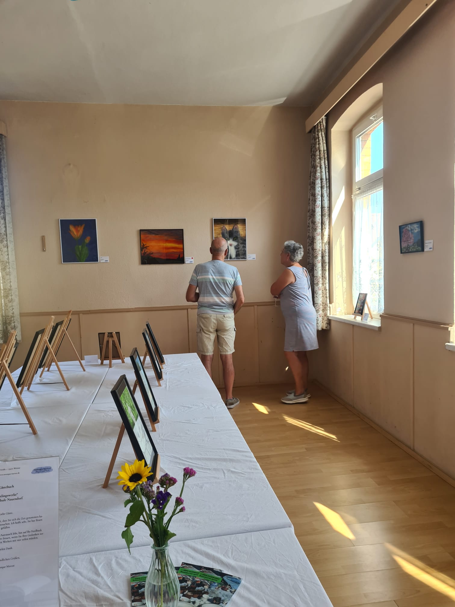 Und doch hat sich die Arbeit für mich am Ende gelohnt. Denn trotz hochsommerlicher Temperaturen von über 30° C kamen rund 90 Besucher (darunter auch einige Mehrfachtäter). Außerdem konnte ich mehrere Bilder verkaufen, was für sich genommen schon ein mega Erfolg ist. Darüber hinaus kam durch die Ausstellung ein großer Auftrag zustande und im Nachgang auch noch einige weitere Projekte, wie Bilder im Postkartenformat als Geschenke zur Senioren-/Rentnerweihnachtsfeier.