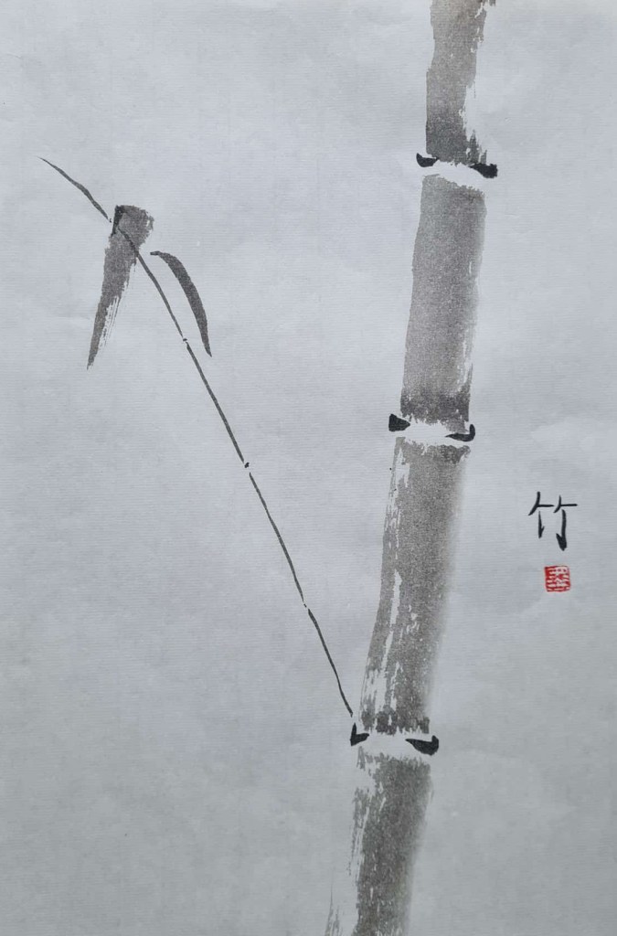 Hier noch ein einfaches Bambusbild. Diesmal sogar mit dem Schriftzeichen für Bambus sowie dem Tuschesiegel.