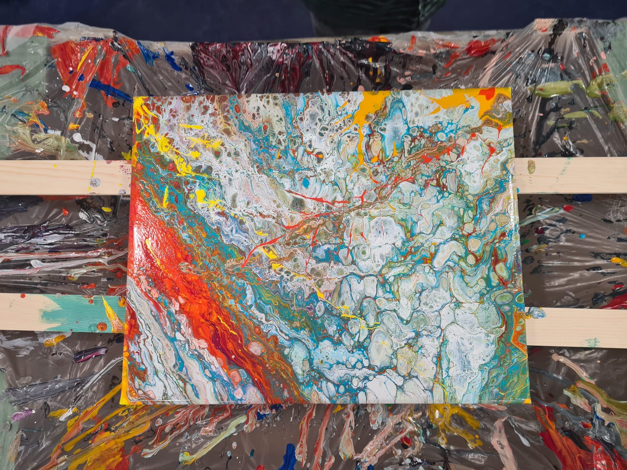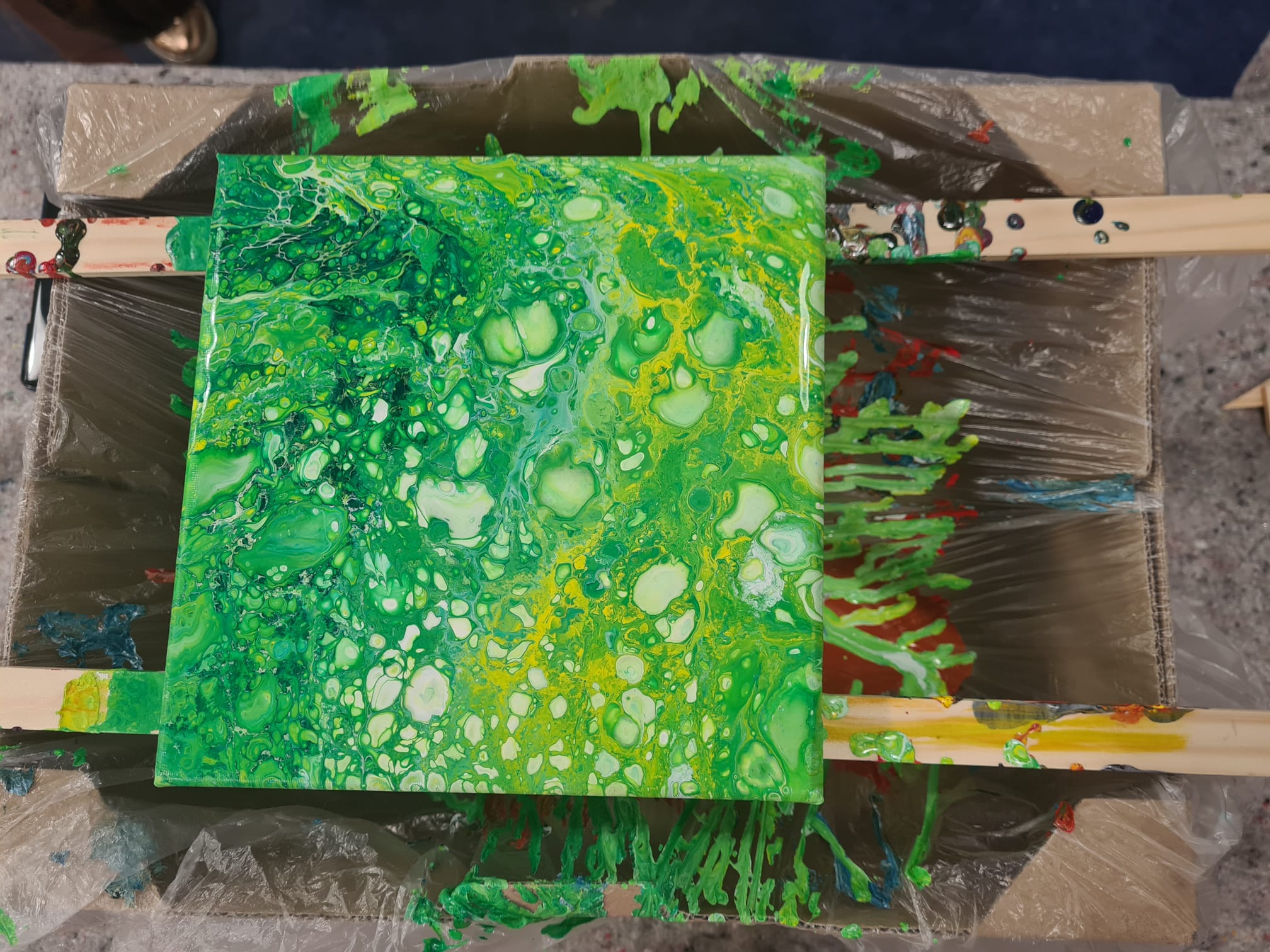 Gefreut habe ich mich auch sehr über die Aussage einer Teilnehmerin, die meinte, dass sie nur darauf gewartet habe, dass jemand das Thema Acrylic Pouring endlich anbietet.