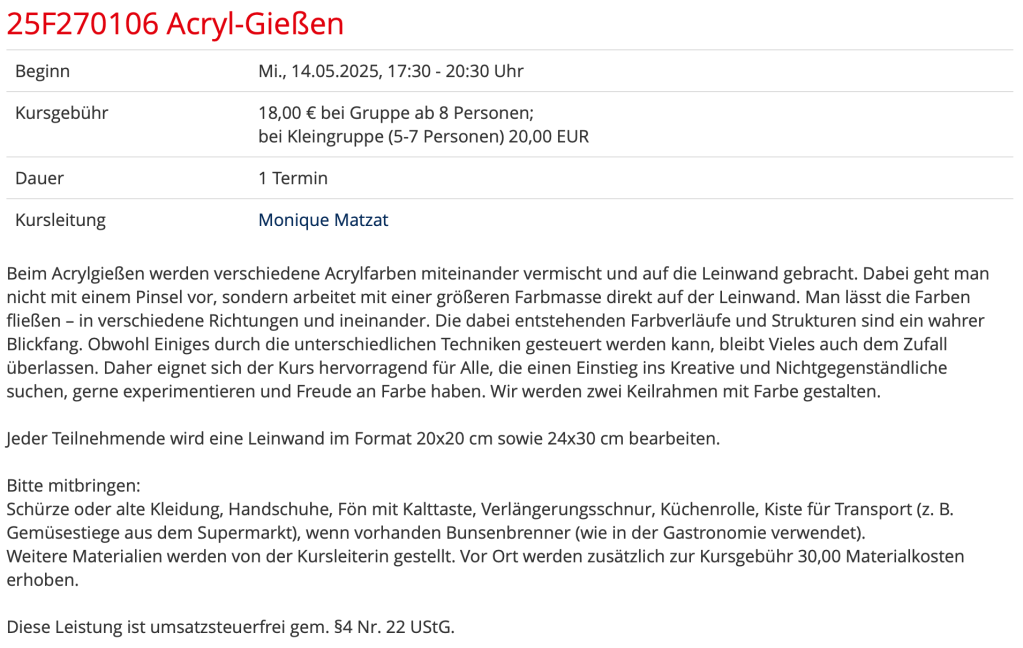 Seit dieser Woche ist es offiziell, ich darf auch an der Kreisvolkshochschule Weimarer Land mit Sitz in Apolda Kurse anbieten.